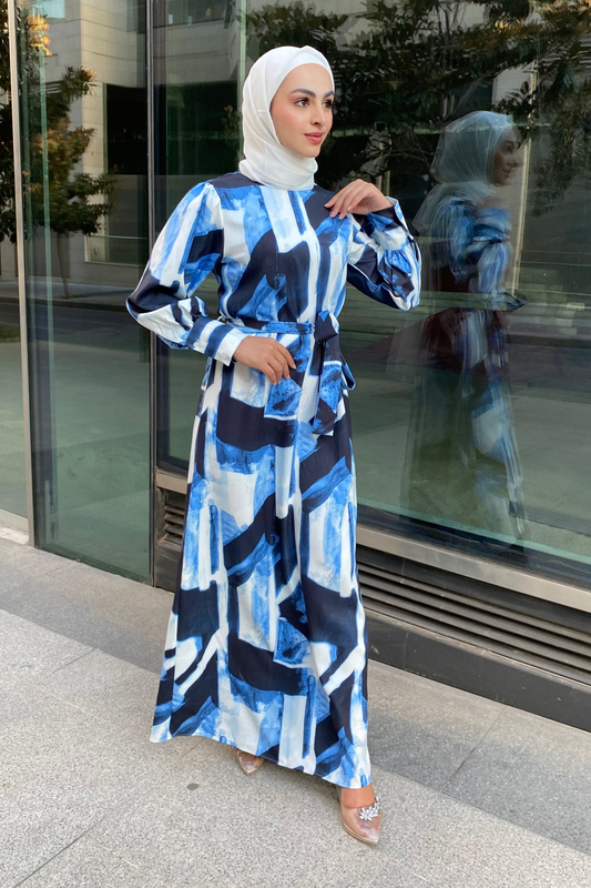 فستان بنقشة عصرية - أزرق